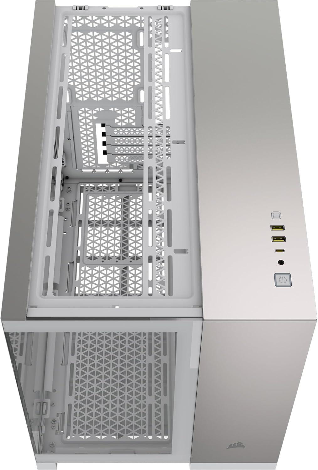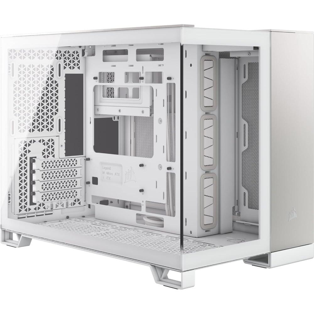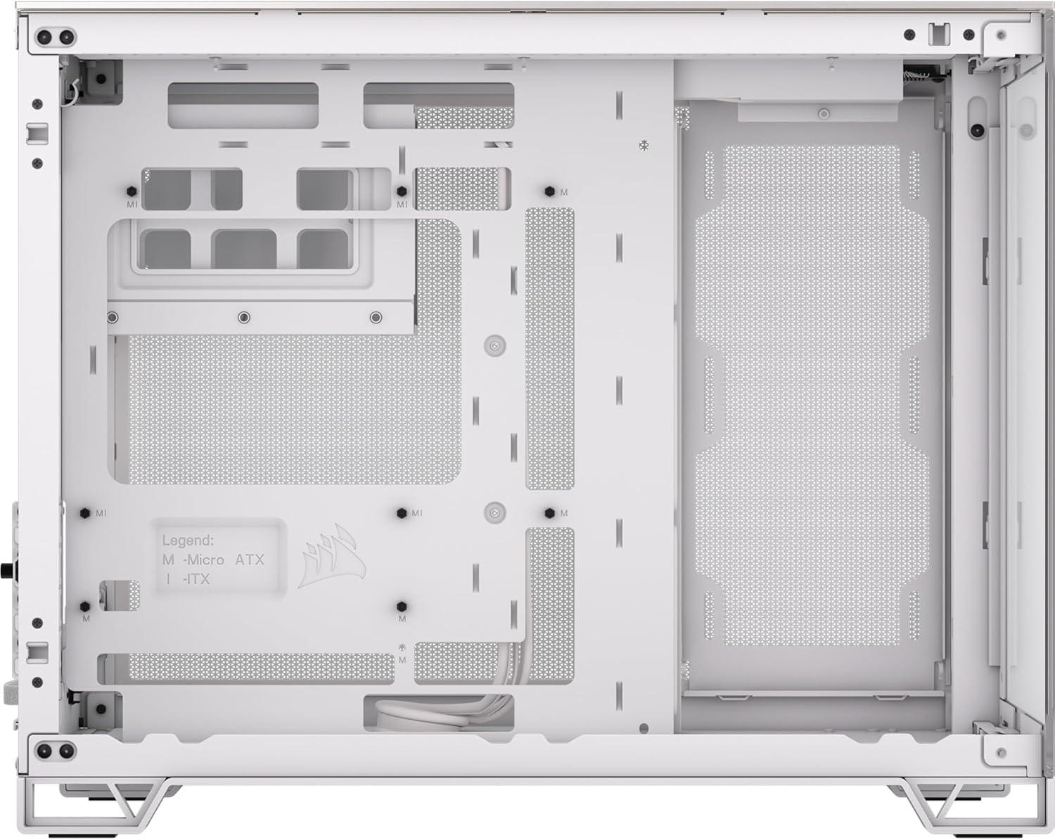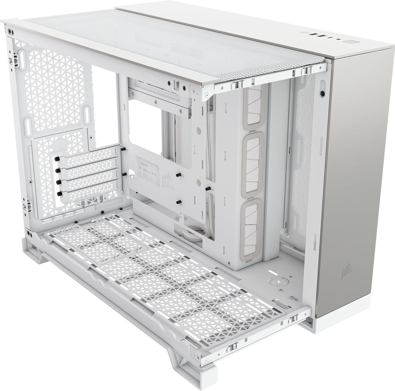 The CORSAIR 2500X Micro ATX Dual Chamber PC Case provides a clean and organised view of your SFF PC through dual tempered glass front panels. Enjoy a clutter-free look with a dedicated chamber for cables, hard drives and controllers. The 2500X’s small size hides plenty of options for your cooling setup, with room for up to 9x 120mm or 4x 140mm fans and versatile radiator mounting positions in the roof, bottom, and side. Compatibility with reverse connection motherboards gives you a cable-free view of your system. Easy tool-free drive mounts accommodate up to 2x 3.5in or 2x 2.5in storage drives, while a modern front panel I/O including USB 3.2 Gen-2 Type-C offers convenient device access. Built for simplicity and offering a range of customisation options, the 2500X ensures your SFF PC looks and performs at its best.