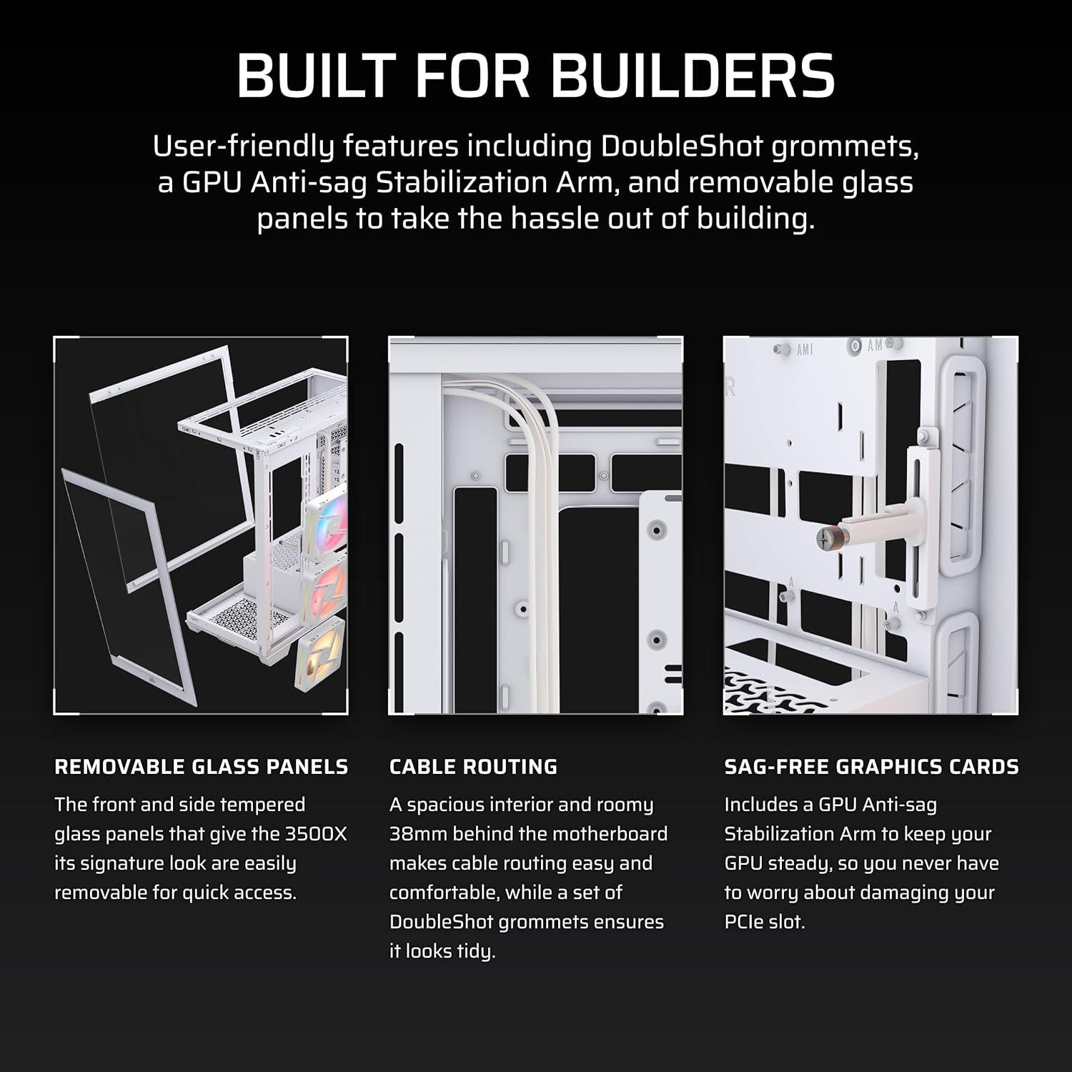 A Great Build with a Great View: The 3500X has all the cooling benefits and essential features you need to build an amazing PC, supporting motherboard form-factors from Mini-ITX to EATX, with a wraparound glass aesthetic to give you the view to match.