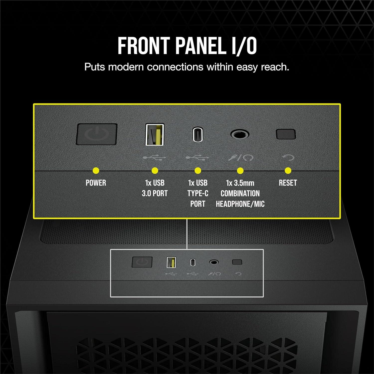 The CORSAIR 4000D AIRFLOW is a mid-tower ATX case with easy cable management and exceptional cooling. A steel front panel offers optimal airflow to your components, accompanied by two included 120mm AirGuide fans designed with anti-vortex vanes that enhance cooling. The CORSAIR RapidRoute cable management system makes it effortless to route major cables through a single channel, with 25mm of routing depth. The 4000D AIRFLOW offers all the space you need for excellent cooling and storage, with room for radiators in sizes up to 360mm and four storage drives. Complete with a modern front I/O panel including a USB-C port, the 4000D AIRFLOW makes great cooling and clean looks easier than ever.