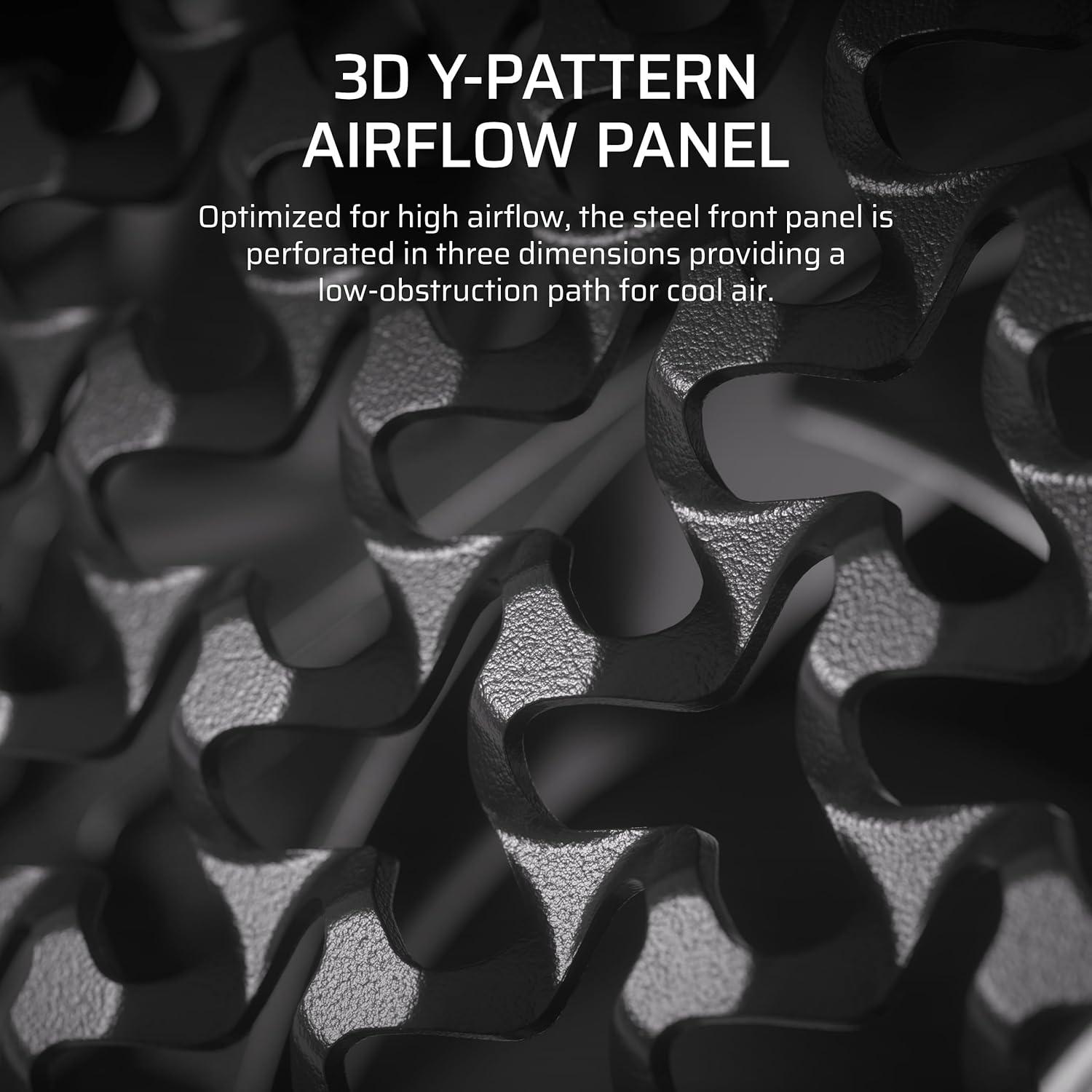 3D Y-Pattern Airflow Panel – Optimized for high airflow and minimal restriction, the steel front panel is perforated in three dimensions with a Y-pattern that provides a low-obstruction path for cool air