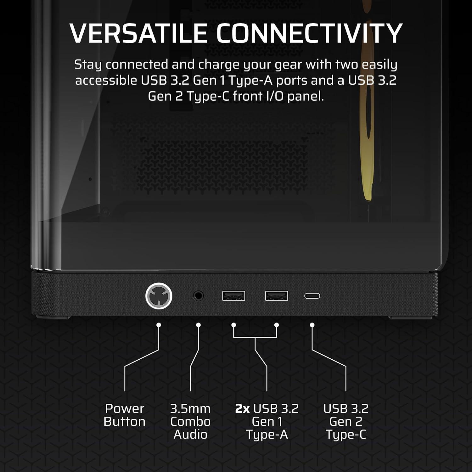 Single-Piece Curved Glass Panel – The front and side panel are made from a single piece of glass, providing an unobstructed, wraparound view of a PC’s glorious hardware