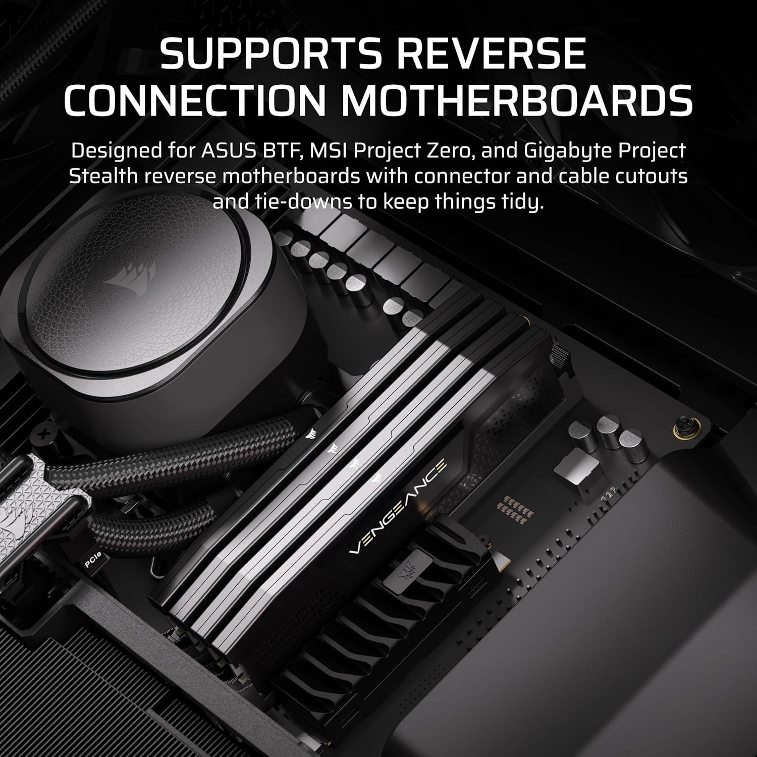 CORSAIR Frame 5000D RS ARGB Modular High Airflow Mid-Tower PC Case – 4X Pre-Installed RS ARGB Fans, InfiniRail™ Fan Mounting System, ASUS BTF, MSI Project Zero, Gigabyte Project Stealth – Black