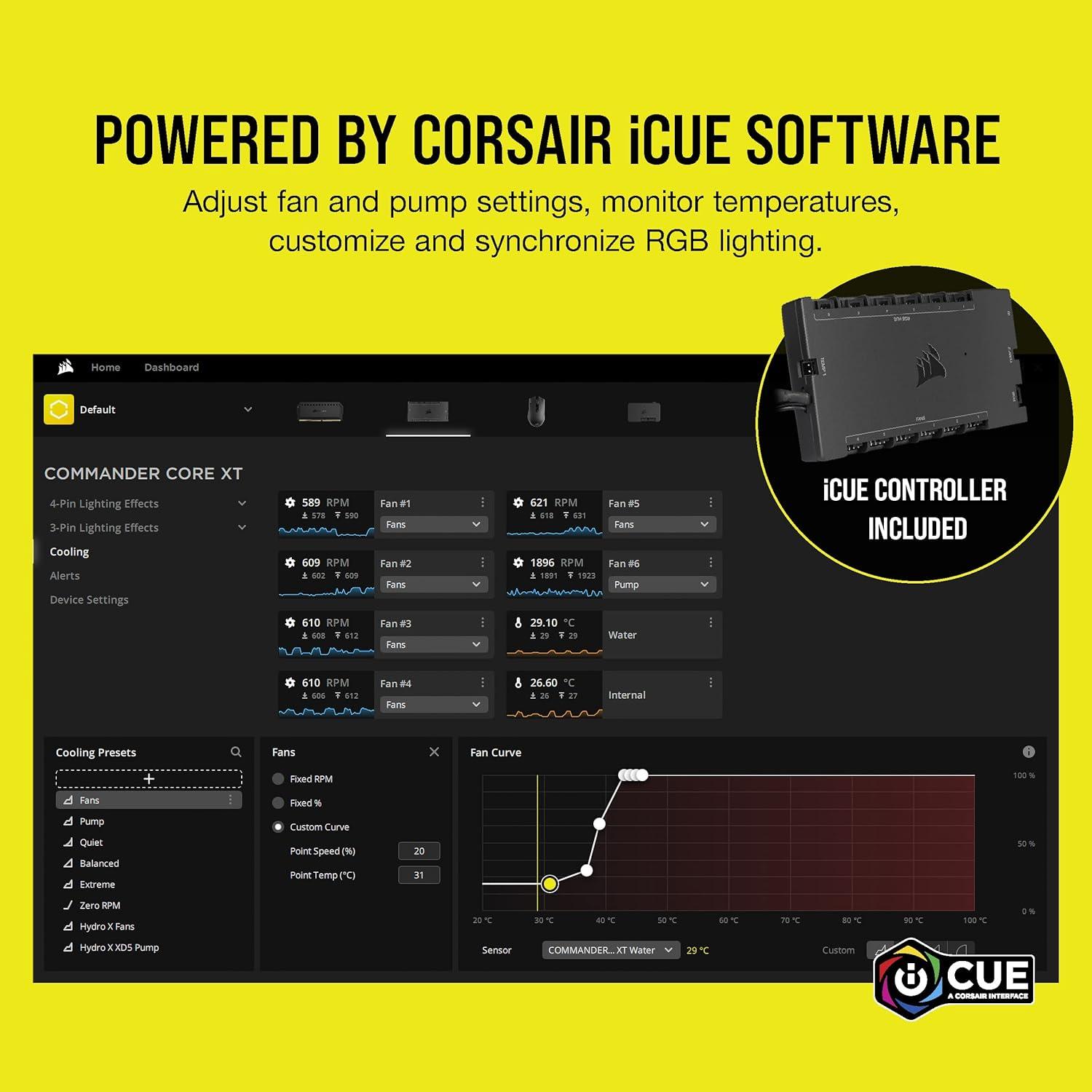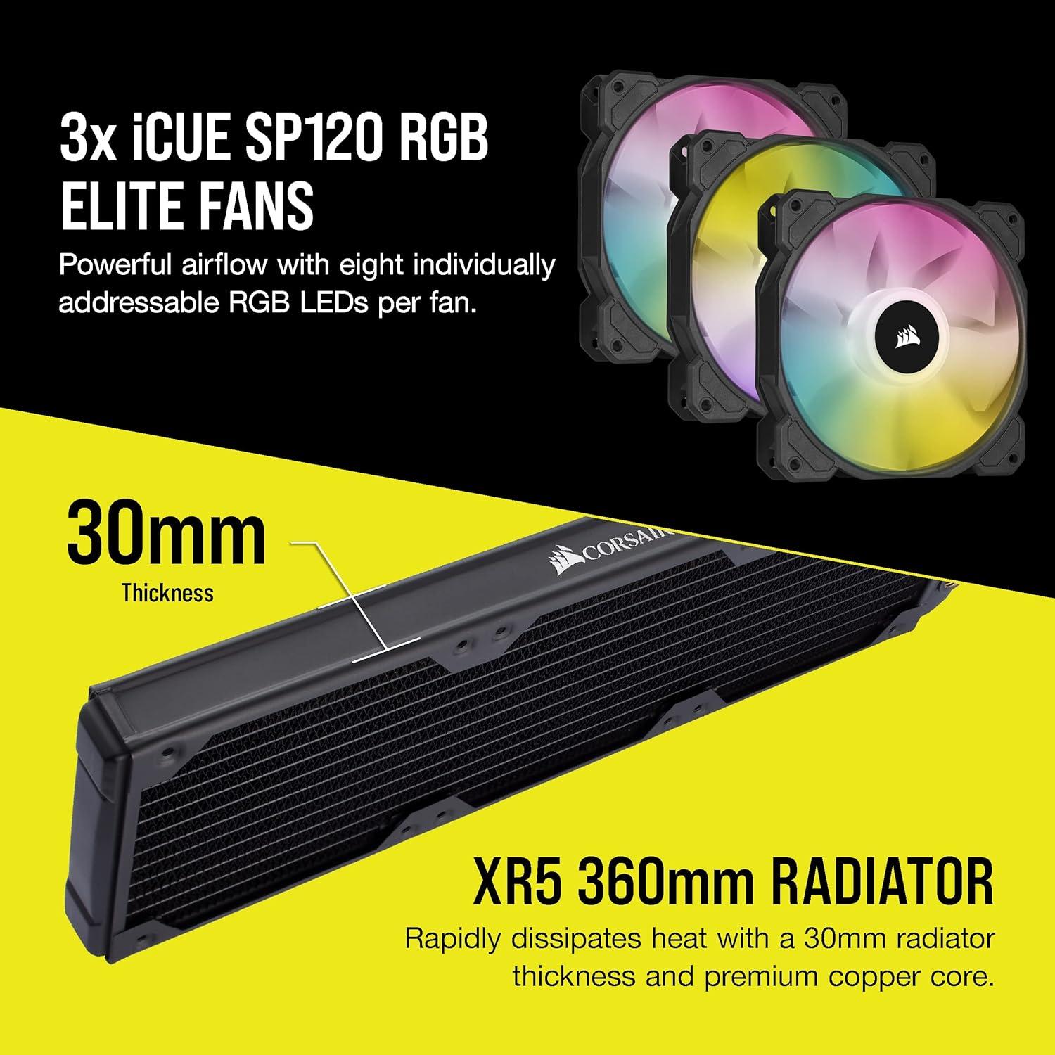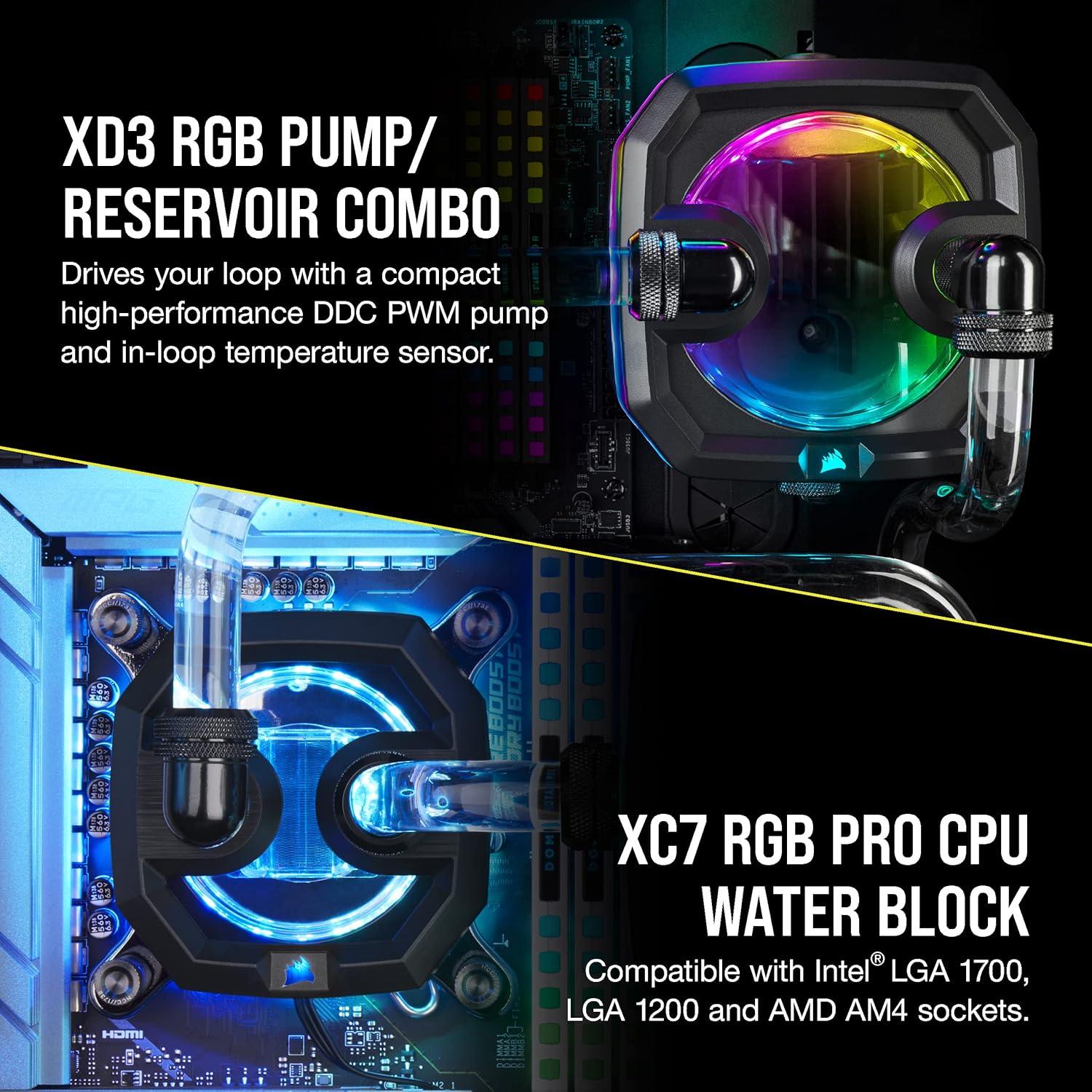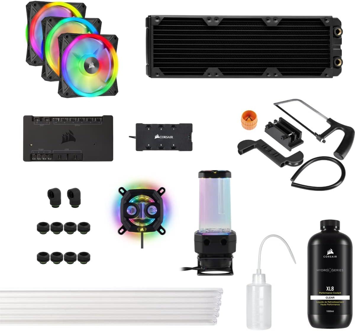 imageCORSAIR Hydro X Series iCUE Link XH405i Custom Cooling Kit  Hardline Water Cooling Loop  XC7 Elite CPU Water Block  XD5 Elite D5 Pump Res  XR5 360mm Radiator  3X QX120 RGB Fans  Stealth GrayBlack