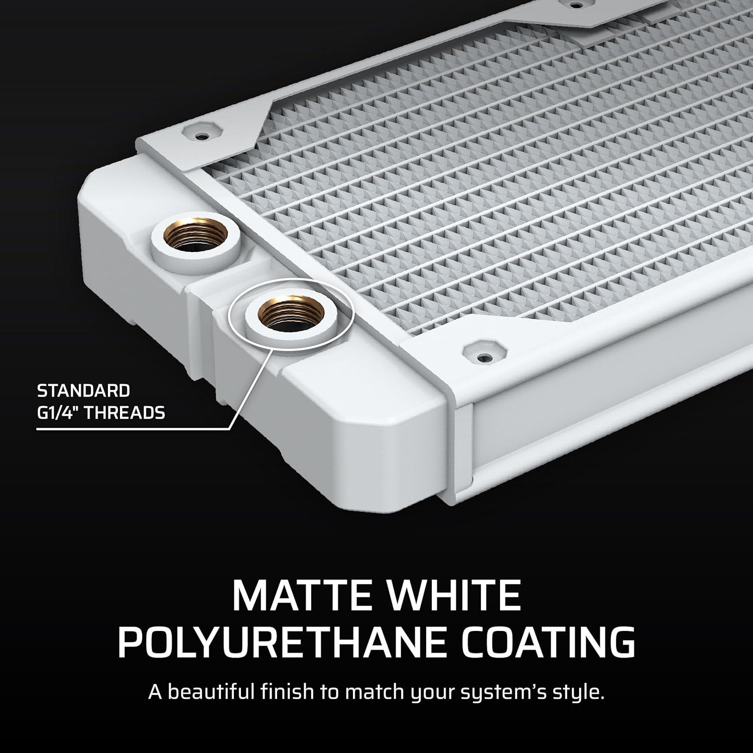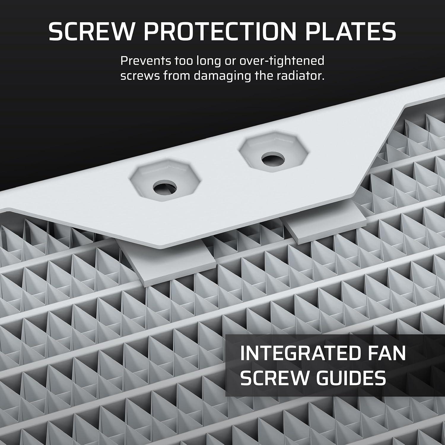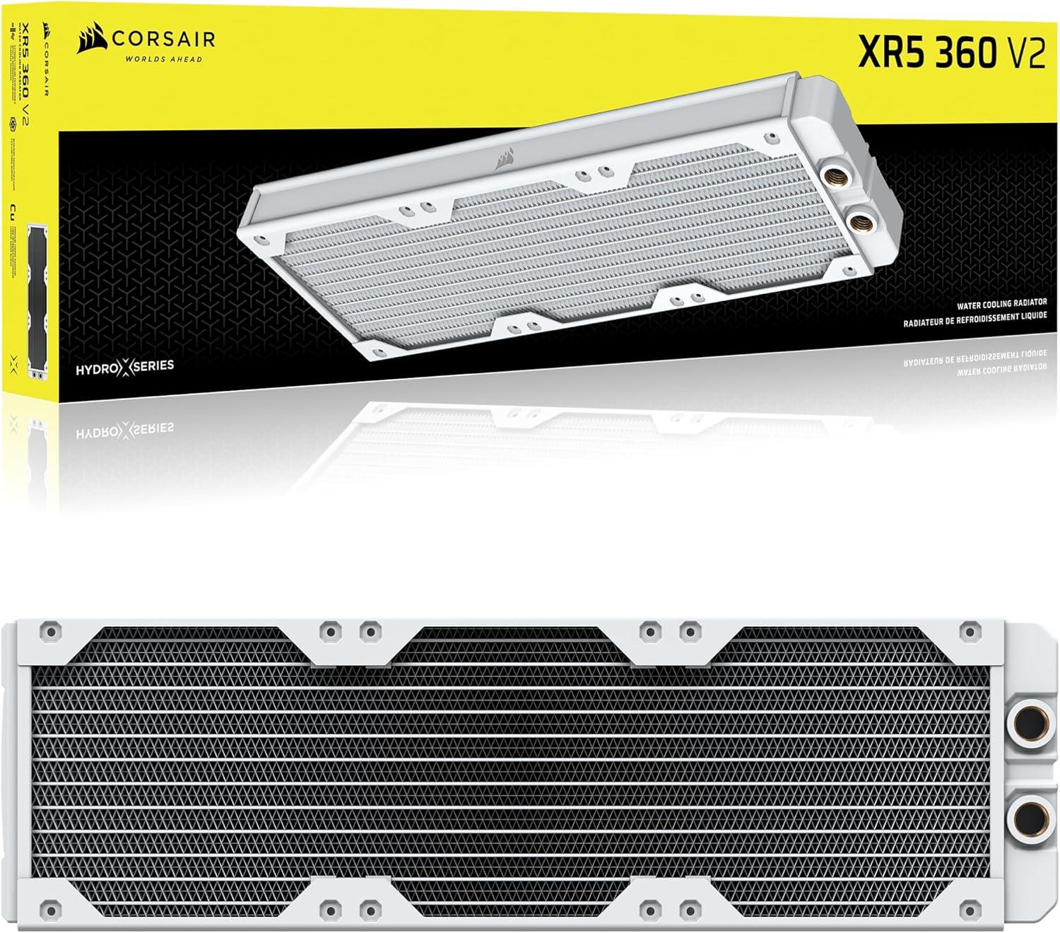 The CORSAIR Hydro X Series XR5 V2 Custom Cooling Radiator delivers extreme cooling performance, featuring a 30mm thick radiator and 25-micron thin cooling fins to maximize heat dissipation surface area. A premium copper radiator core is optimized for use alongside copper CPU and GPU water blocks, enhancing thermal transfer efficiency. Intuitive features, such as Integrated Fan Screw Guides, built-in Screw Protection Plates, improved support for iCUE LINK fans, simplify installation and help prevent radiator damage. With standard G1/4″ threads for universal compatibility and a surface area capable of handling cutting-edge high-performance hardware, the Hydro X Series XR5 V2 Custom Cooling Radiator is engineered to cool even the most ambitious custom liquid cooling loops and conquer heat.