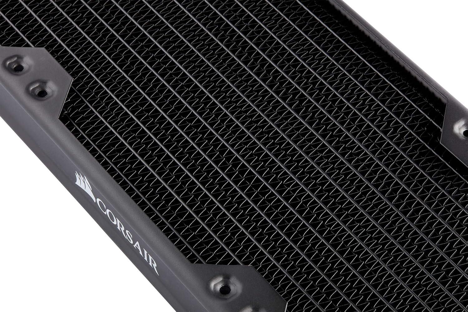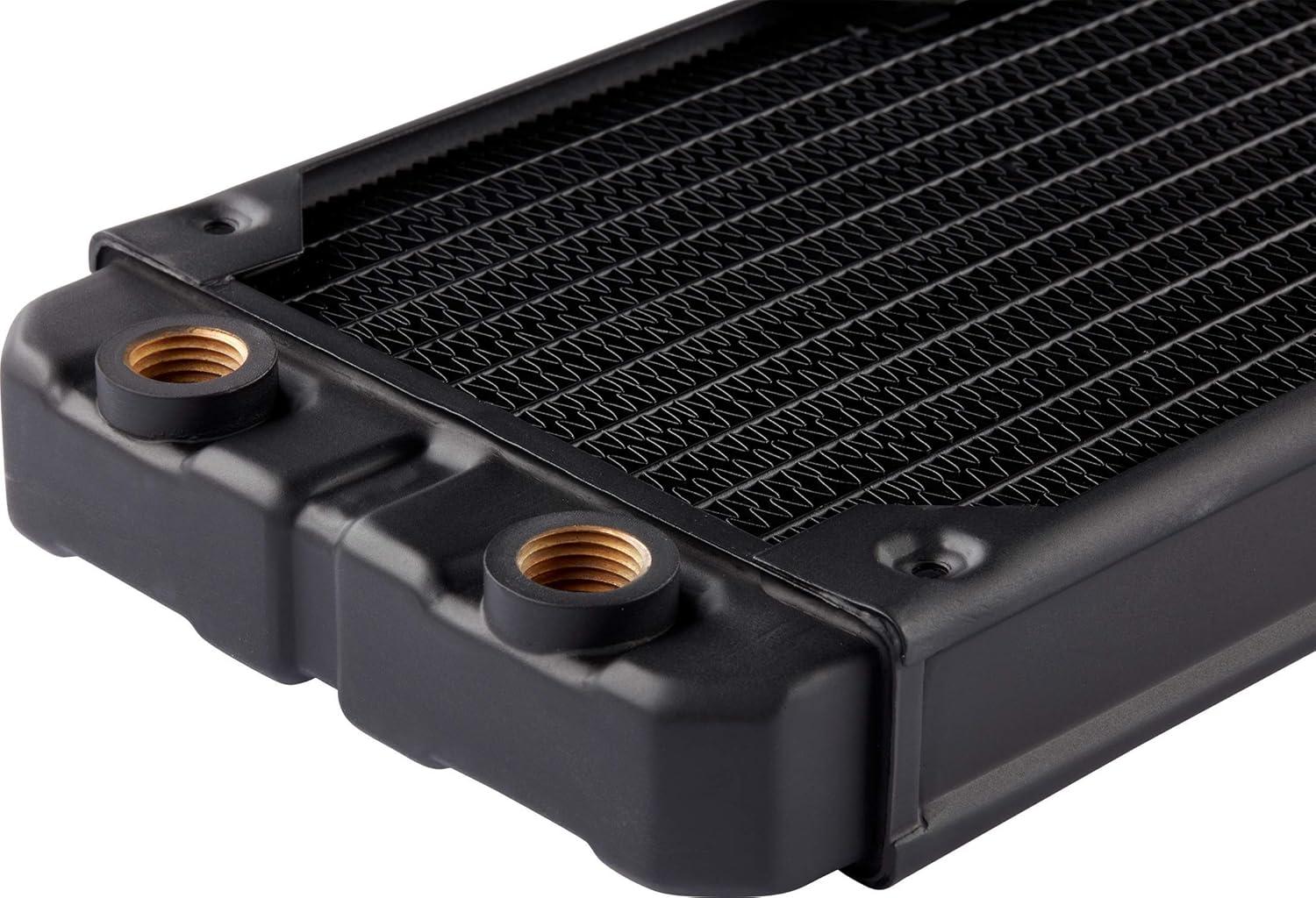 The CORSAIR Hydro X Series XR5 360 mm Water Cooling Radiator delivers extreme custom liquid cooling performance, with 30 mm radiator thickness and 25-micron thin cooling fins maximising heat dissipation surface area. A premium copper radiator core is optimised for use alongside copper CPU and GPU water blocks, further increasing the thermal transfer rate. Intuitive extras such as Integrated Fan Screw Guides and built-in Screw Protection Plates make it easy to install fans, without worrying about damaging the radiator. Equipped with standard G1/4 Inch threads for universal compatibility and the surface area to tame even the highest-end hardware, the XR5 360 mm radiator stands ready to cool even the most ambitious custom cooling loops and defeat the heat.