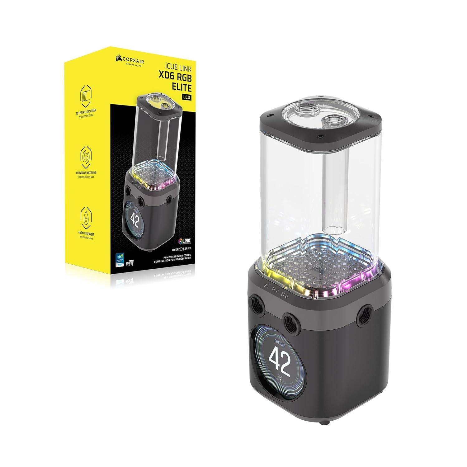 CORSAIR iCUE Link XD6 RGB Elite LCD Pump/Reservoir Unit – FlowDrive Max Pump, 480x480 IPS LCD Screen, Built-in Temperature Sensor, 22 Addressable RGB LEDs, 440ml Nylon Reservoir – Stealth Gray(Stealth Gray)