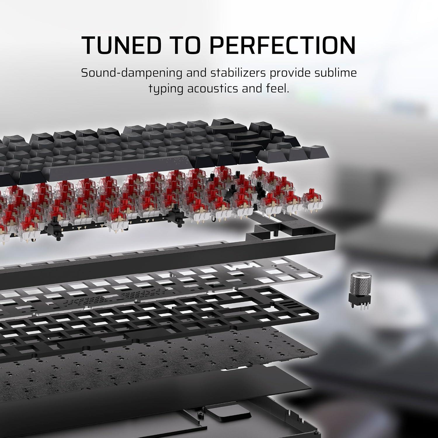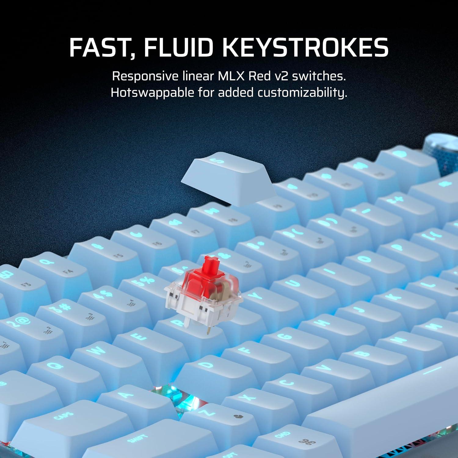 CORSAIR MLX Red v2 Switches: Pre-lubricated CORSAIR MLX Red v2 linear mechanical switches offer a silky smooth, responsive keypress for gaming and typing.