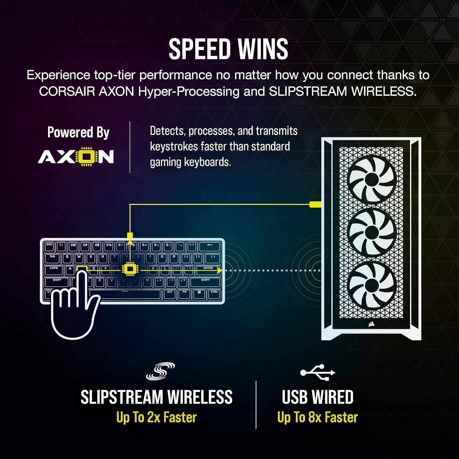 Play at AXON-Speed: CORSAIR AXON Hyper-Processing Technology gets your actions from the keyboard to the game up to 8x faster than standard gaming keyboards, while playing up to 20 RGB lighting layers.