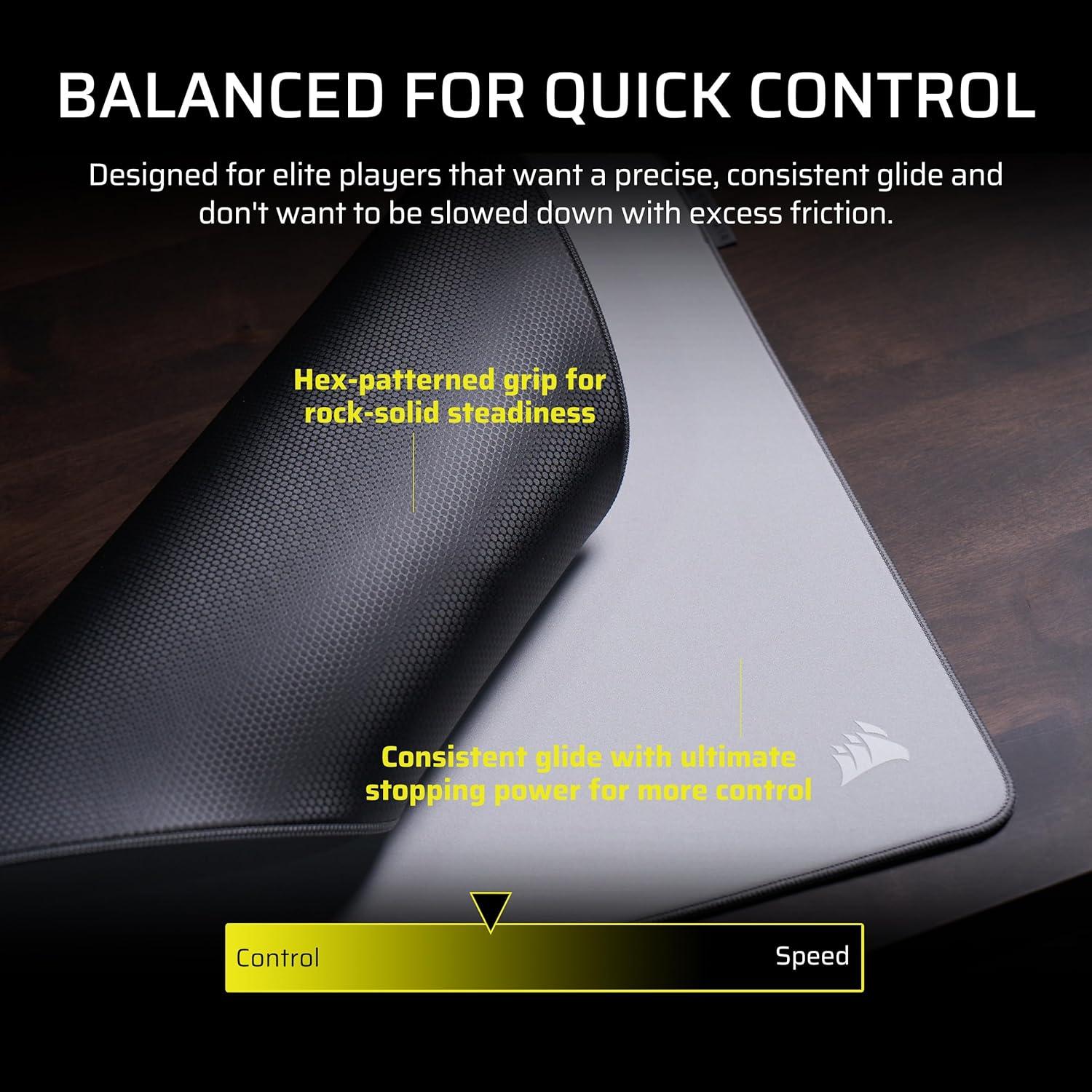 Corsair MM PRO Control Cloth Medium Gaming Mouse Pad – Esports-Tuned Surface for Precision & Micro-Adjustments, 4mm Thick Non-Slip Base, Durable Stitched Edges(Gray)