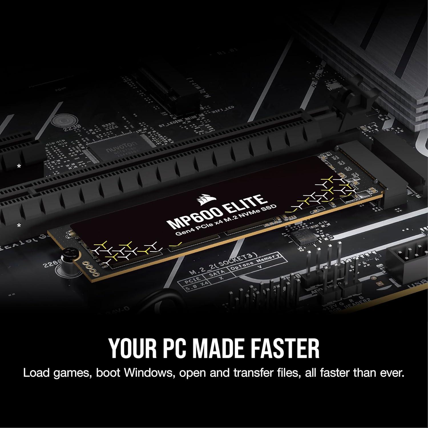 imageCorsair MP600 Elite 4TB M2 PCIe Gen4 x4 NVMe SSD  M2 2280  Up to 7000MBsec Sequential Read  HighDensity 3D TLC NAND  for Desktops and Laptops  BlackWithout Heatspreader