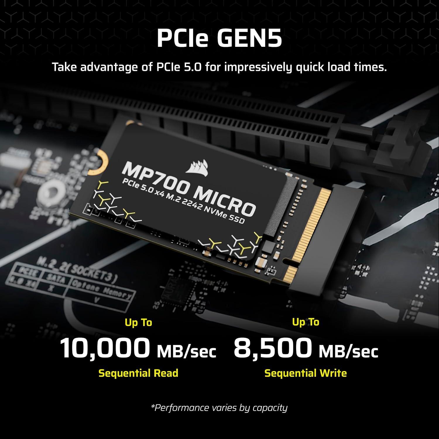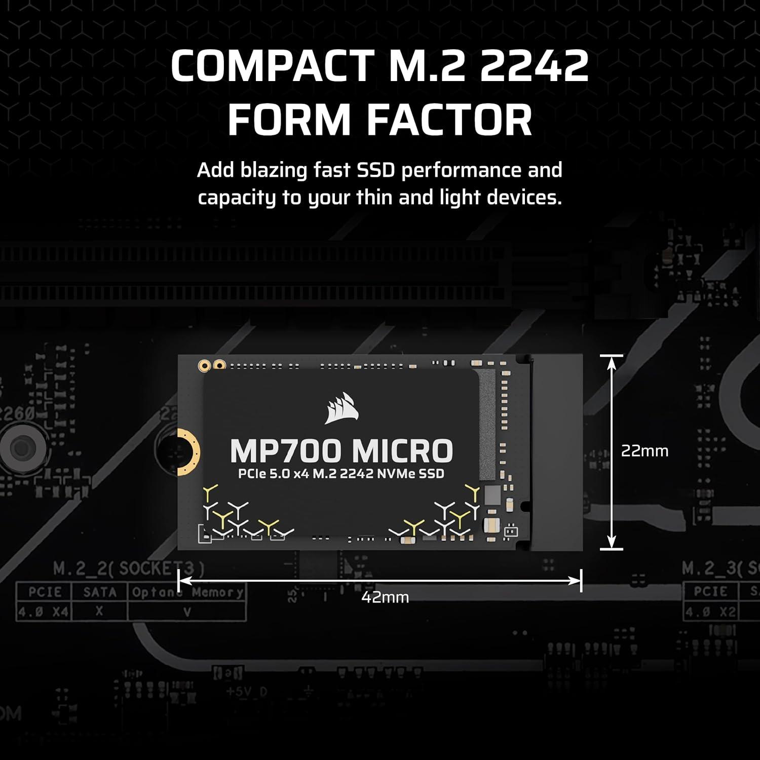 imageCorsair MP600 Micro 2TB M2 NVMe PCIe x4 Gen4 SSD  M2 2242  Up to 7000MBsec Sequential Read  HighDensity 3D TLC NAND  Compatible with Lenovo Legion Go and Thin PCIe 40 Laptops  Black2TB