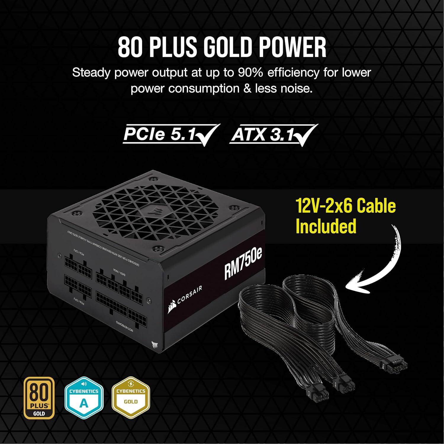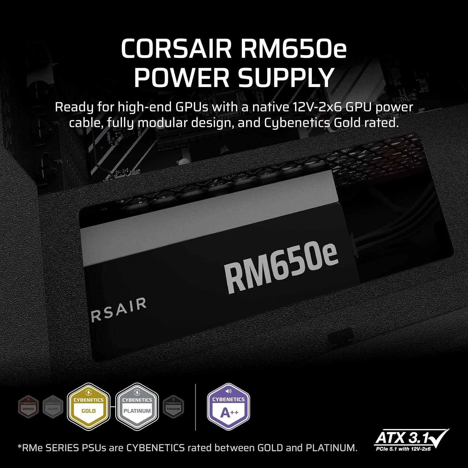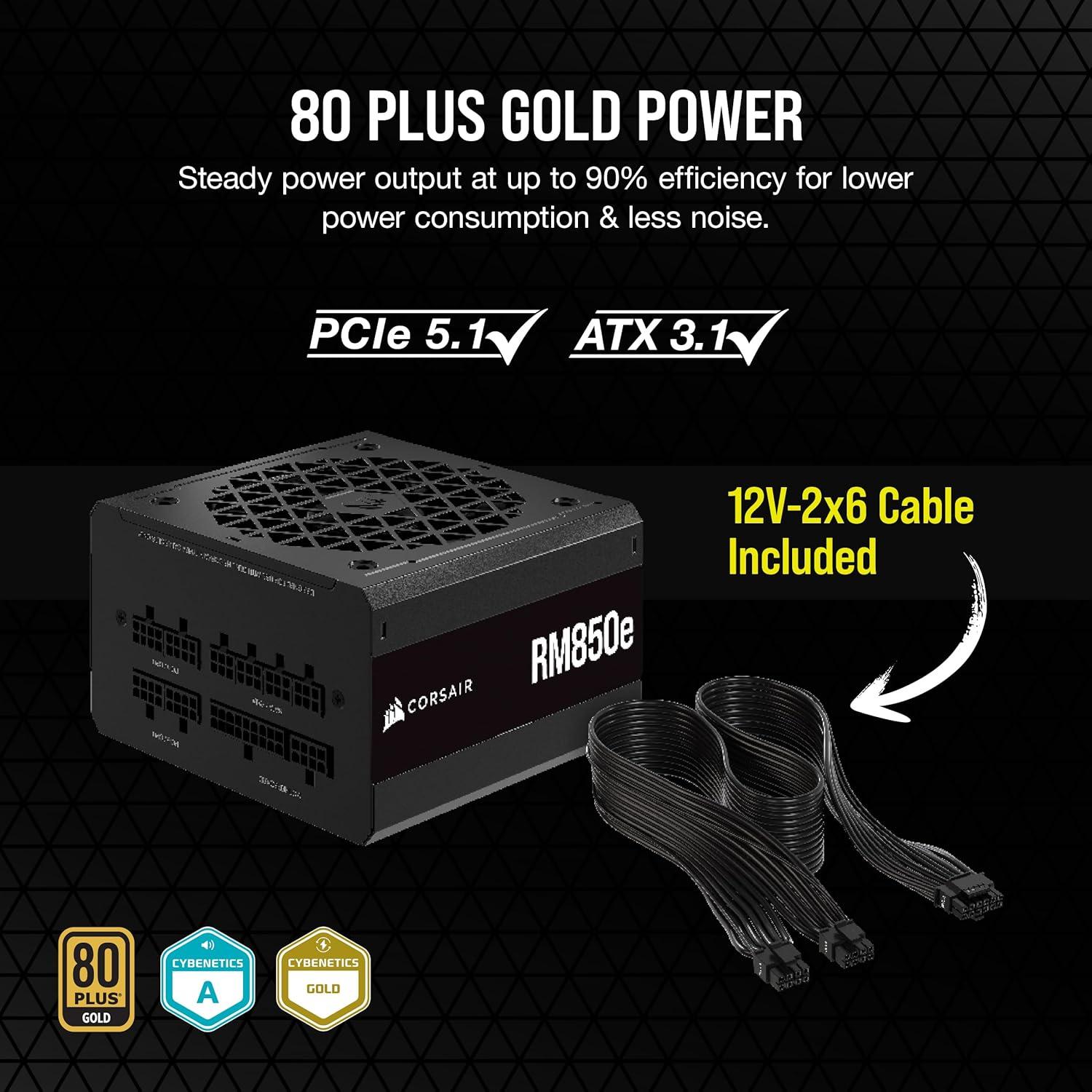CORSAIR RM1200e (2023) Fully Modular Low-Noise ATX Power Supply with 12V-2x6 Cable – ATX 3.1 & PCIe 5.1 Compliant, Cybenetics Platinum Efficiency, 105°C-Rated Capacitors, Modern Standby Mode – Black(Black)
