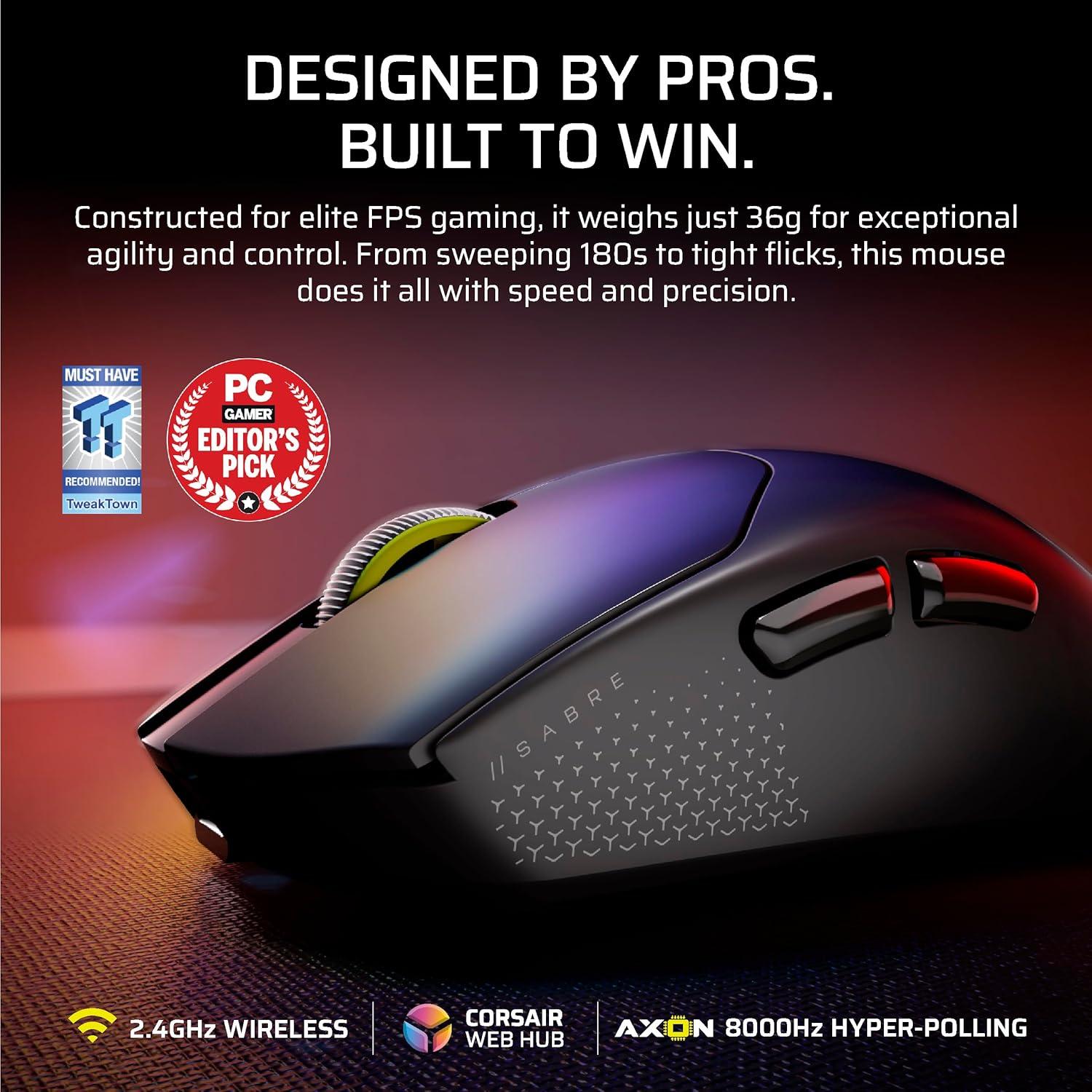 Corsair Sabre v2 PRO Ultralight FPS Wireless Gaming Mouse – 33,000 DPI, 36g Weight, 8,000Hz Hyper-Polling, Mechanical Switches, Up to 70-Hour Wireless Battery Life, Web Hub – Black(Black)