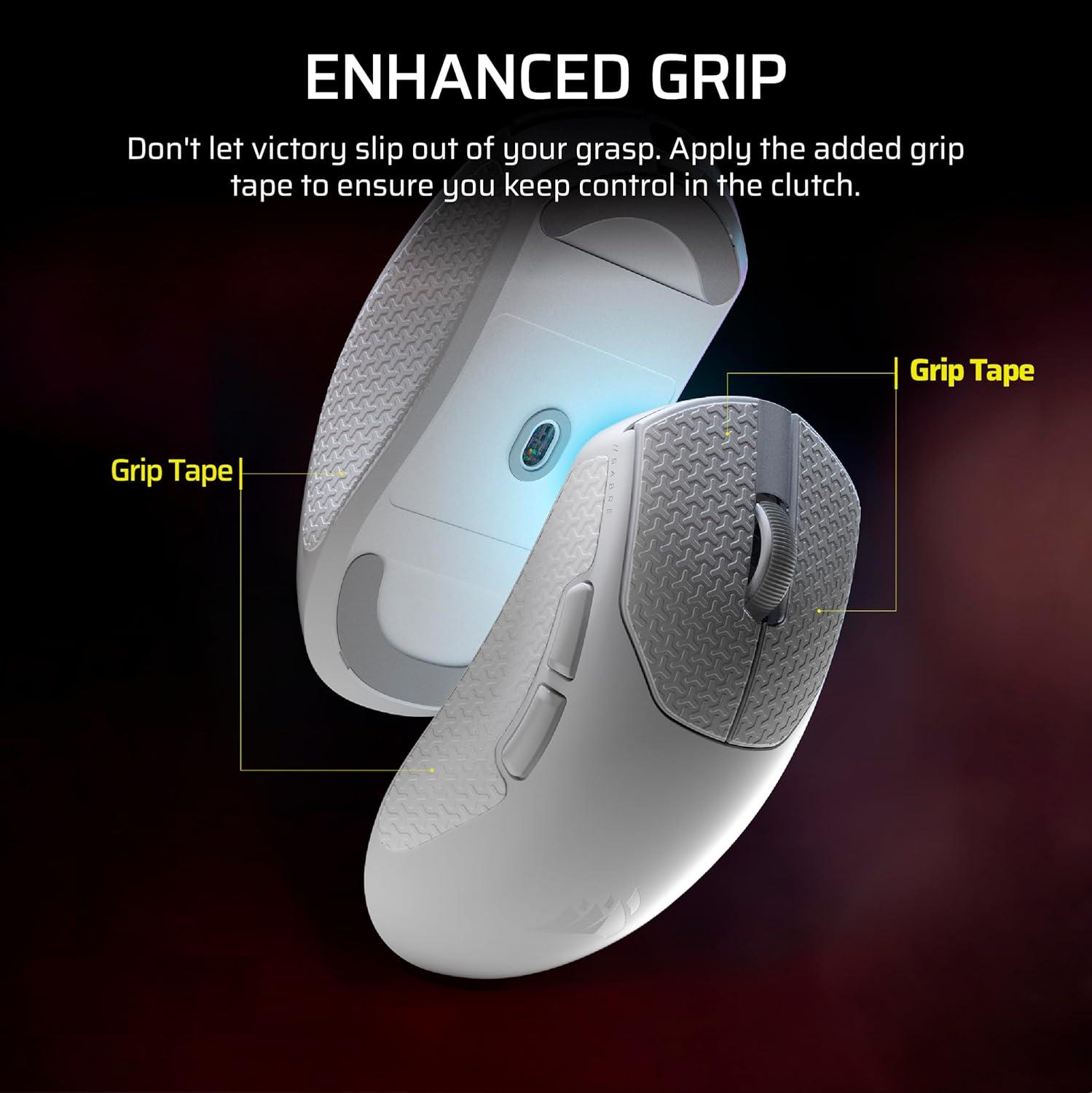 Get pro-level performance with the CORSAIR SABRE v2 PRO Ultralight Wireless Gaming Mouse. Weighing just 36g, it’s built for elite FPS players who demand speed, agility, and precision. With its 8,000Hz hyper-polling and CORSAIR MARKSMAN S 33,000 DPI sensor that tracks up to 750 IPS and 50G acceleration, SABRE v2 PRO delivers latency defying responsiveness and pixel-perfect control. The light weight, symmetrical shape, and up to 70 hours of 2.4GHz wireless freedom provide comfort and endurance to grind through competitive sessions. Customize your mouse with additional grip tape, replacement skates, and CORSAIR Web Hub.