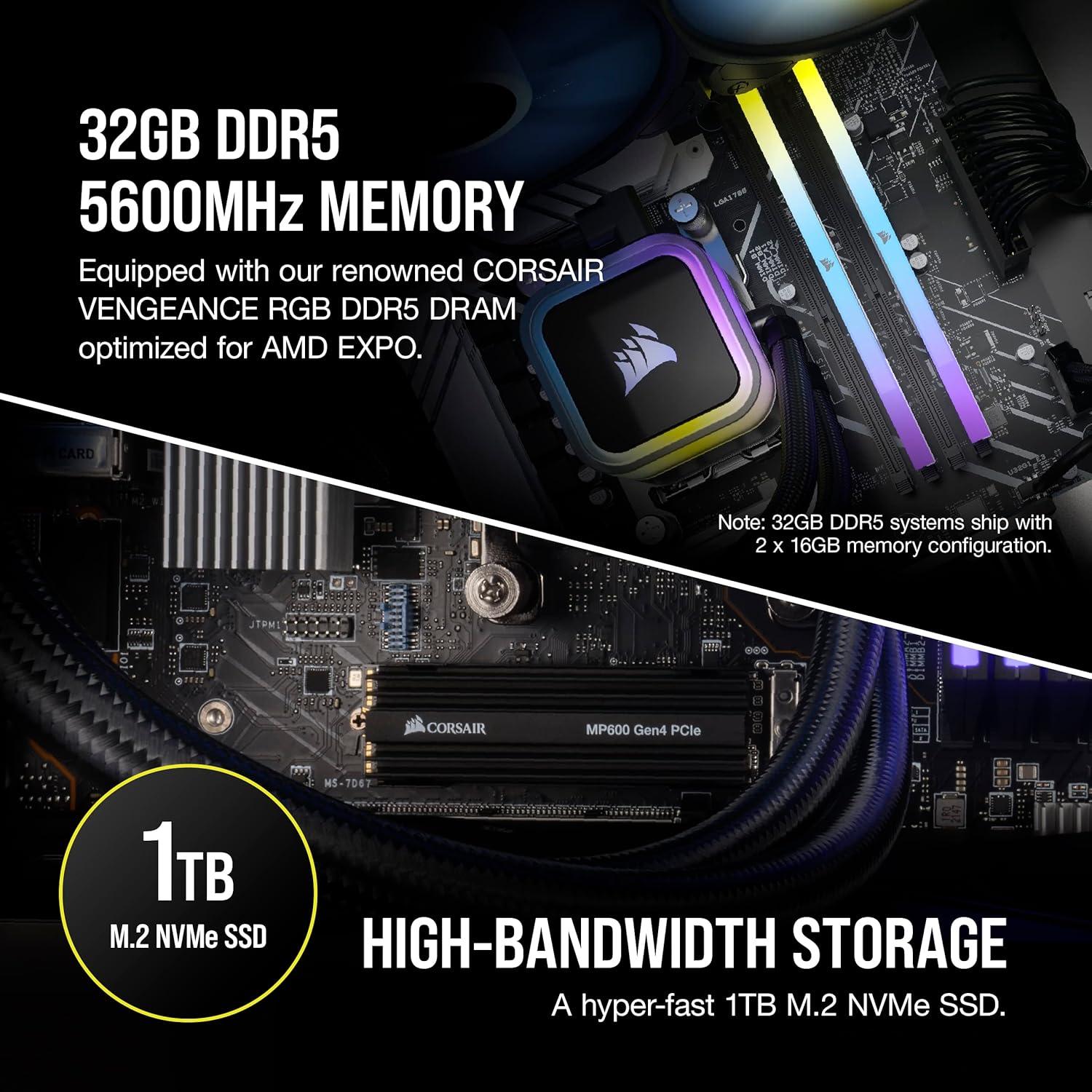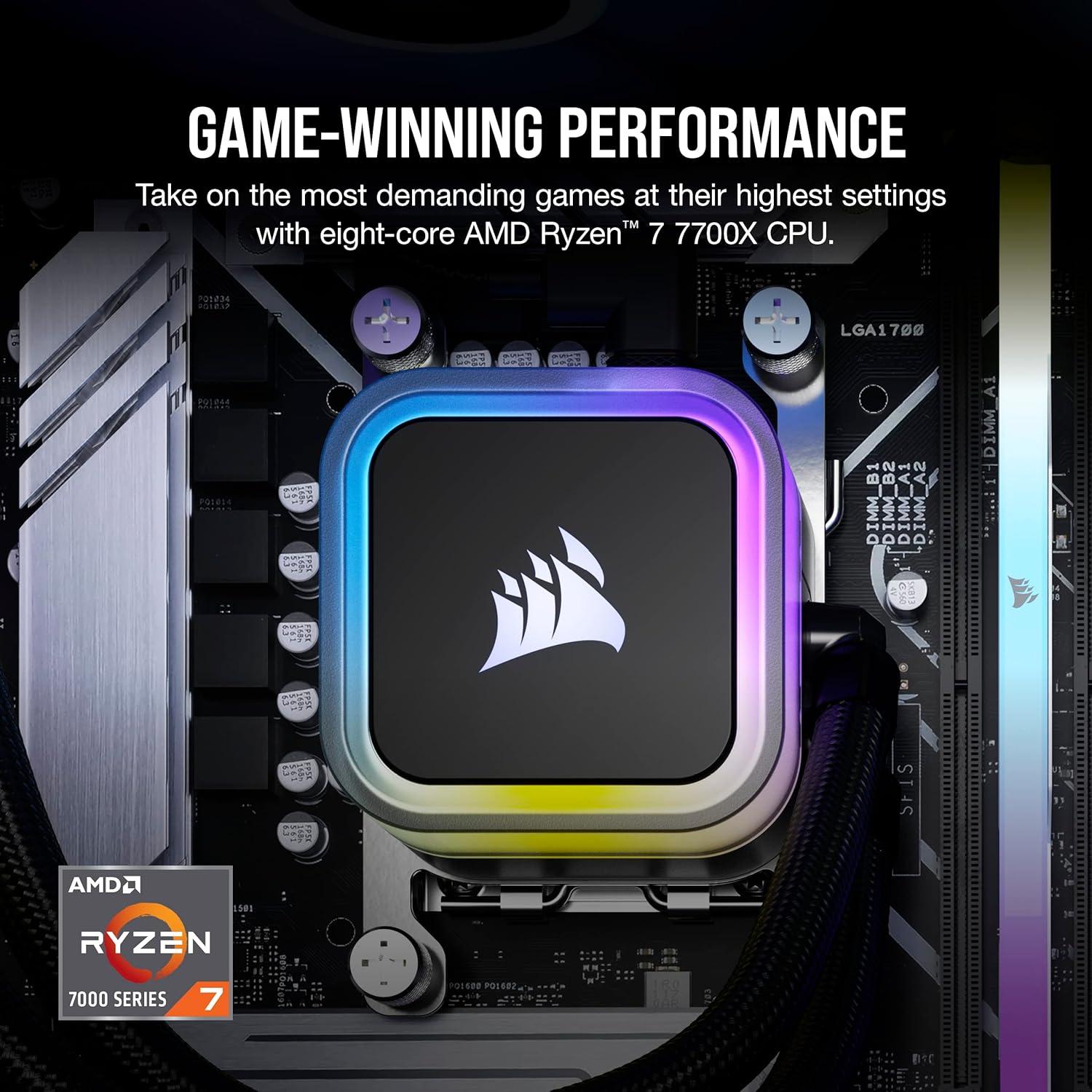 imageCorsair Vengeance a7400 Series Gaming PC  Liquid Cooled AMD Ryzen 5 9600X CPU  NVIDIA GeForce RTX 4060 GPU  32GB Vengeance RGB DDR5 Memory  1TB M2 SSD  BlackRyzen 7 7700X  4070 Ti SUPER