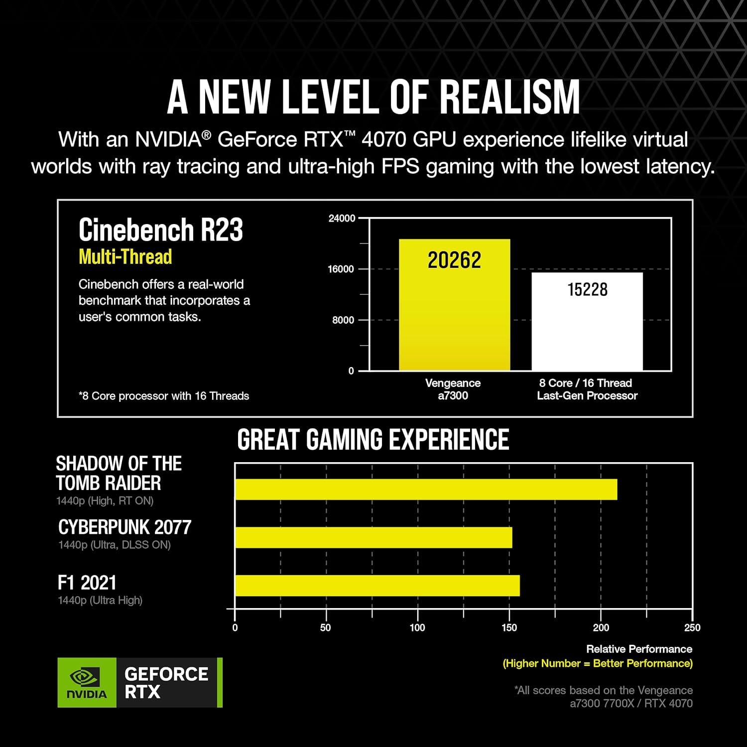 NVIDIA GeForce RTX 40 Series Graphics: Experience lifelike virtual worlds with ray tracing and ultra-high FPS gaming with the lowest latency.