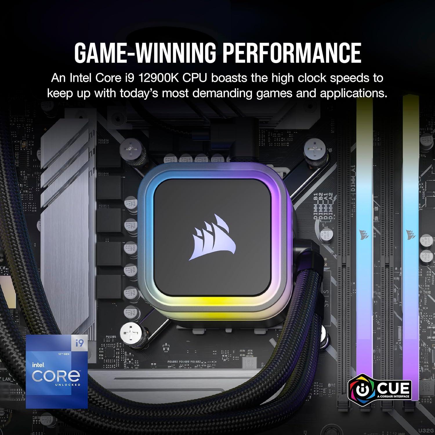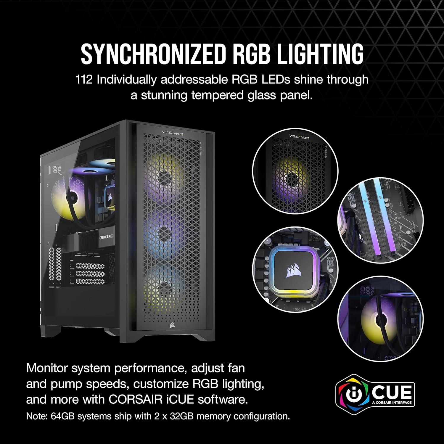imageCorsair Vengeance a7400 Series Gaming PC  Liquid Cooled AMD Ryzen 5 9600X CPU  NVIDIA GeForce RTX 4060 GPU  32GB Vengeance RGB DDR5 Memory  1TB M2 SSD  Blacki9 12900K  4090