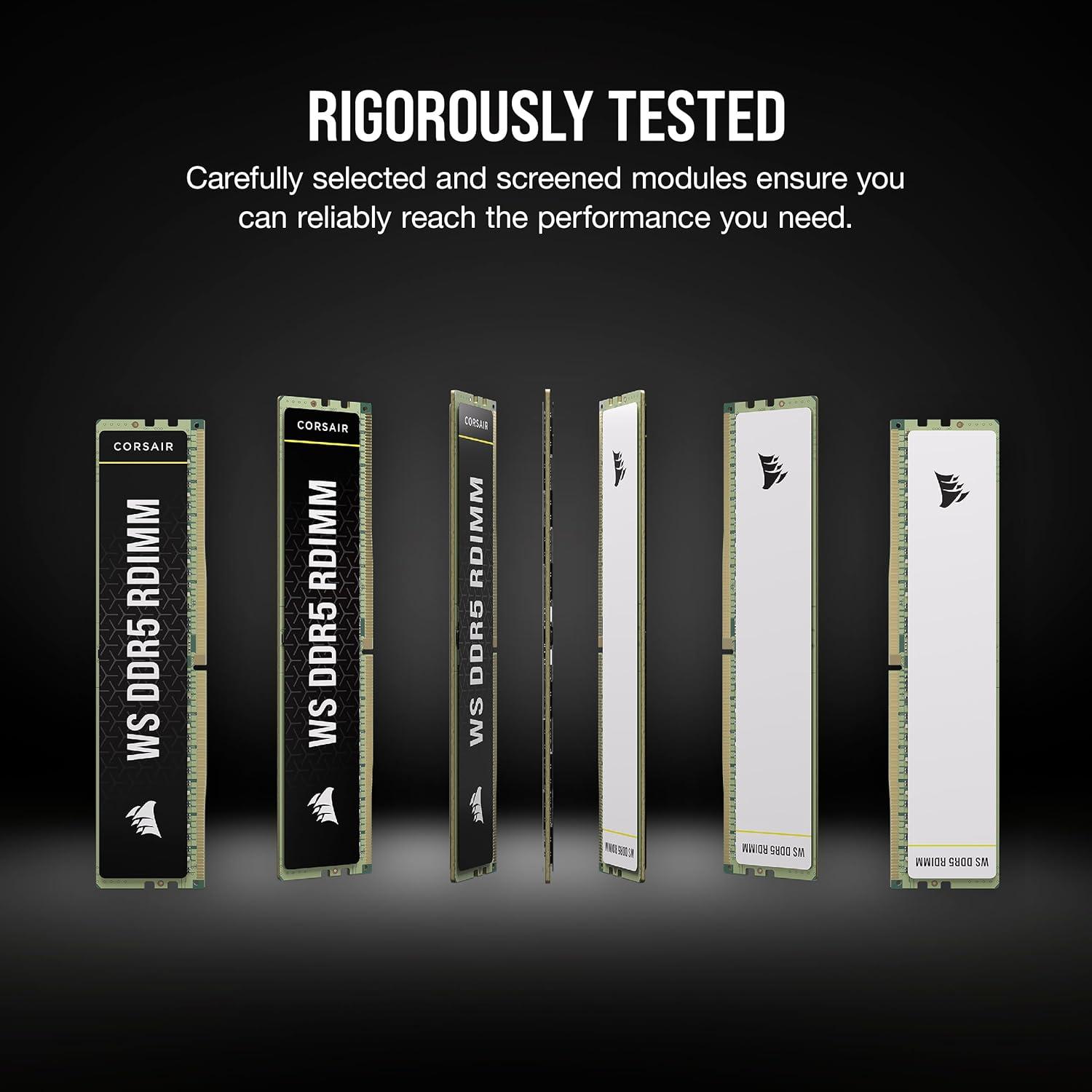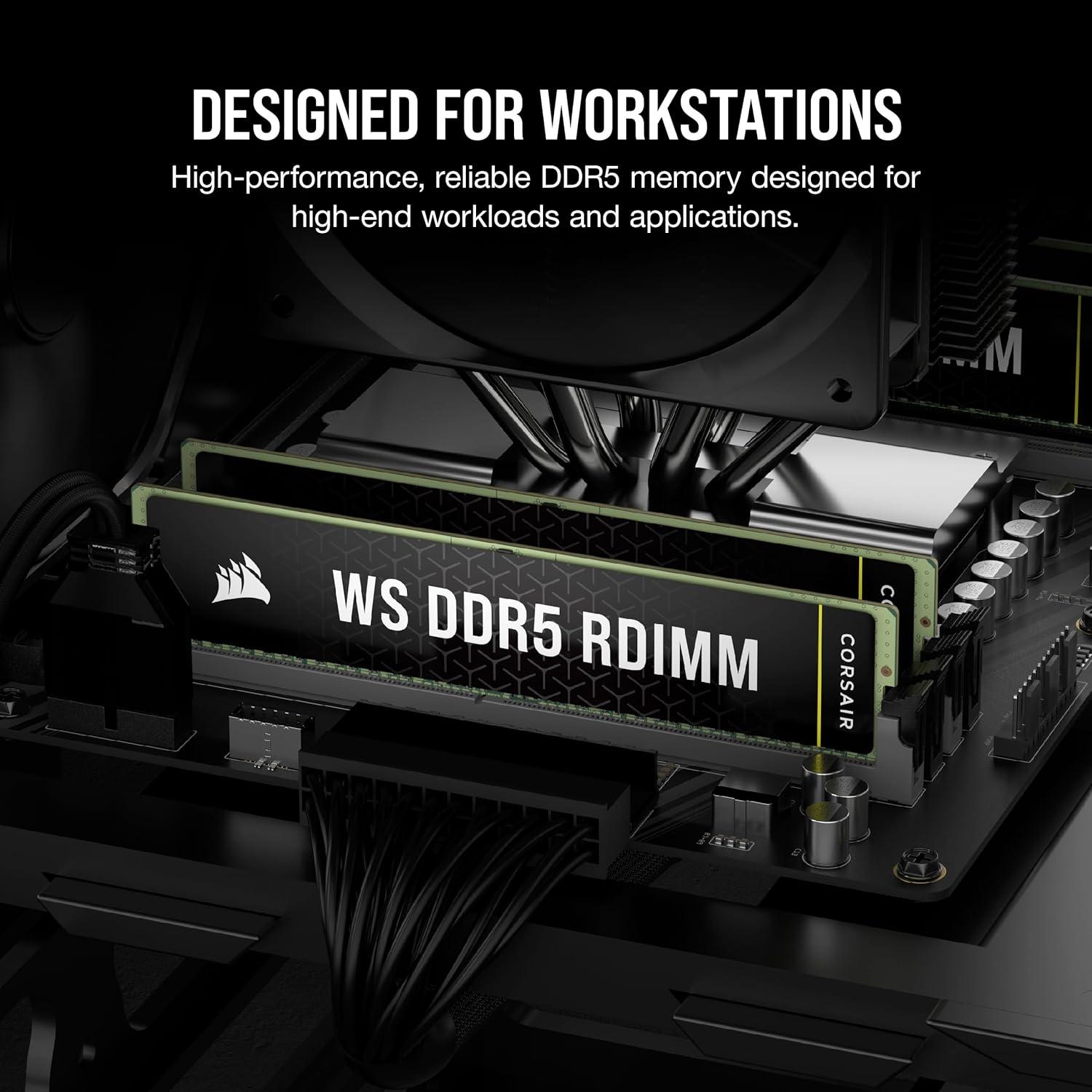 CORSAIR WS DDR5 ECC RDIMM 64GB (4x16GB) 5600MHz CL40 AMD Expo Intel XMP 3.0 Computer Memory – Black (CMA64GX5M4B5600Z40)(6000MHz)