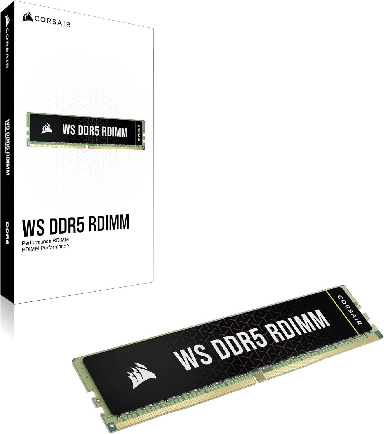 CORSAIR WS DDR5 ECC RDIMM 64GB (4x16GB) 5600MHz CL40 AMD Expo Intel XMP 3.0 Computer Memory - Black (CMA64GX5M4B5600Z40)(6000MHz)