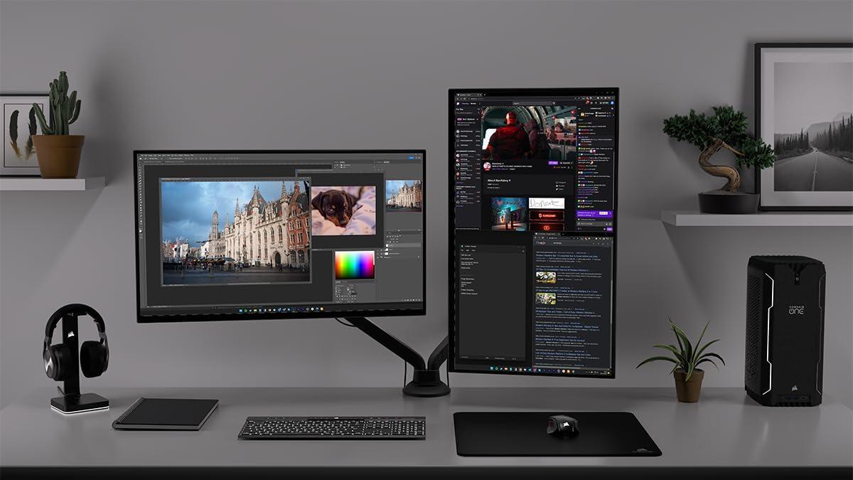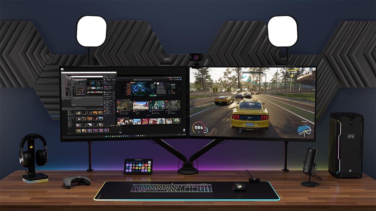 An alternative monitor stand option for the CORSAIR FLEX that securely holds the monitor, enhancing productivity and efficiency.
